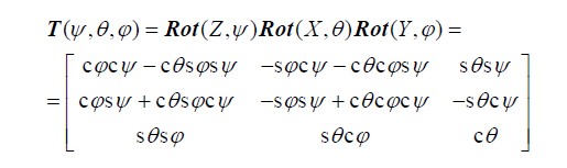 考慮到轉(zhuǎn)臺(tái)運(yùn)動(dòng)的特點(diǎn):動(dòng)平臺(tái)只有轉(zhuǎn)動(dòng)沒有平 動(dòng)。選擇動(dòng)靜平臺(tái)平行時(shí)的支鏈向量作為初定的鉸鏈 座的法線向量nc。最優(yōu)法線n0 由nc 經(jīng)旋轉(zhuǎn)得到。由 n0 到nc 的旋轉(zhuǎn)可用變量ψn,θn 來表示。具體見圖3。 以nc 的方向?yàn)閆 軸,建立坐標(biāo)系OS-XYZ。X 先繞Z 軸旋轉(zhuǎn)ψn 至X ′ ,nc 再繞X ′ 軸旋轉(zhuǎn)θn 即可到達(dá)n0。 在OS-XYZ 中,nc S=[0,0,1]T,n0 相對(duì)于OS-XYZ 可表示為: 0S = 1 ⋅ S = 1 ⋅[0 0 1]T n T nc T 。 則n0 相對(duì)于動(dòng)系可表示為: 0 0 P S r n = T ⋅ n 。 注: ( n , n ) ( , ,0) ψ θ = ψ θ T1 T ;坐標(biāo)系OS-XYZ 相對(duì) 于動(dòng)系是固定的,轉(zhuǎn)換矩陣為Tr。 這樣就把求最優(yōu)鉸鏈座法線的問題轉(zhuǎn)變?yōu)榍笞顑?yōu)ψn,θn 的問題。采用的方法是二維搜索法。