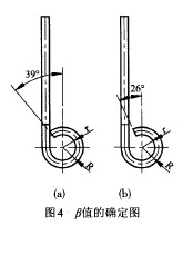 (1) β值的確定。在工藝計算展開長度時, 值 一般不能按圖4(a)來確定。盡管考慮了中性層的位移,在實際生產過程中存在多種因素,如板料厚度公差、模具制造誤差、材料塑性變形而引起的伸長等,根據(jù)經驗,按圖4(b)確定,效果較好,能滿足產品設計要求。