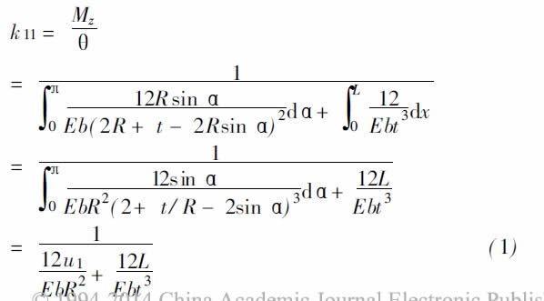 1.1 倒圓角直梁型和橢圓直梁復(fù)合型柔性鉸鏈剛度計(jì)算公式