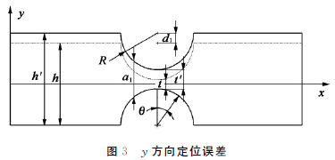柔性鉸鏈的厚度t是一個(gè)重要的參數(shù),切口圓弧y 方向的定位誤差d1如圖3所示,它直接影響厚度t的大小。在誤差d1的影響下