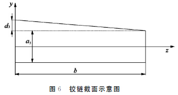 式中,α 是轉(zhuǎn)角;M 是轉(zhuǎn)矩;E 是材料彈性模量;I 是鉸鏈截面對(duì)z 軸的慣性矩。取出如圖2的微元進(jìn)行積分,可得鉸鏈轉(zhuǎn)角公式為:
