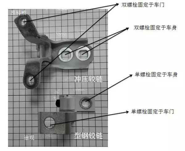 這一點(diǎn)和上一條很相似,一方面是連接面積的問題,還有一方面就是單螺栓面積和雙螺栓面積的區(qū)別。還是雙點(diǎn)固定技術(shù)讓昂科威的鉸鏈在這部分也領(lǐng)先很多。