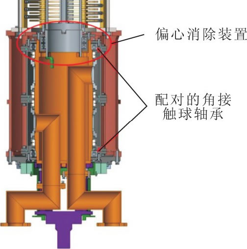 a.將水鉸鏈的結構形式由徑向排布式改進為軸向排布式, 縮短水鉸鏈的軸向尺寸[5], 從而在保證原外形接口與尺寸不變的情況下, 在水鉸鏈與匯流環(huán)中間增加偏心消除裝置 (如圖8所示) 。