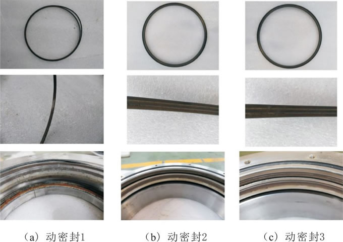 c.解剖發(fā)現 (如圖3所示) , 動密封1 (最上端動密封圈) 齒形滑環(huán)的齒形已磨損嚴重, 其中起補償作用的O型圈已出現不可恢復的變形, 而動密封2 (最下端動密封圈) 和動密封3 (通道之間的動密封圈) 齒形滑環(huán)的齒形只有少許磨損。