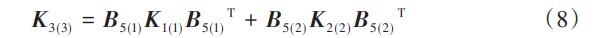 綜上,半輪型柔性鉸鏈中各子柔性單元?jiǎng)偠染仃囋谀┒俗鴺?biāo)系{O3,X3,Y3,Z3}中的整合總剛度矩陣為:
