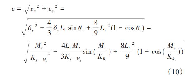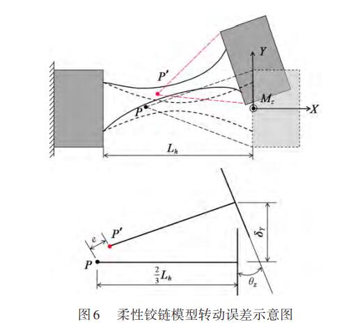 整體半輪型柔性鉸鏈的長度為Lh,在力矩MZ的作用下,通過幾何關(guān)系計(jì)算轉(zhuǎn)動(dòng)誤差e可表示為: