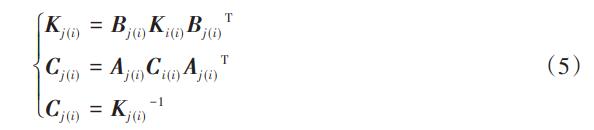 式中:A、B為旋量伴隨變換矩陣,滿足上述式中A-1=BT;j (i)為坐標(biāo)系{oi}中的剛度矩陣關(guān)于坐標(biāo)系{oj}的表達(dá)。